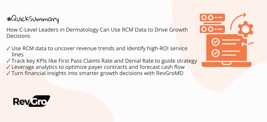 In dermatology practices, success today is defined by more than patient satisfaction and clinical excellence — it’s driven by data. Specifically, Revenue Cycle Management (RCM) data has become a goldmine for C-level leaders looking to scale operations, improve profitability, and make smarter strategic decisions.